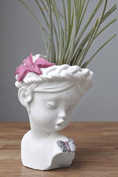 Pot en béton décoratif – Buste petite fille couronne de fleurs + plante incluse 👧🌸🌿