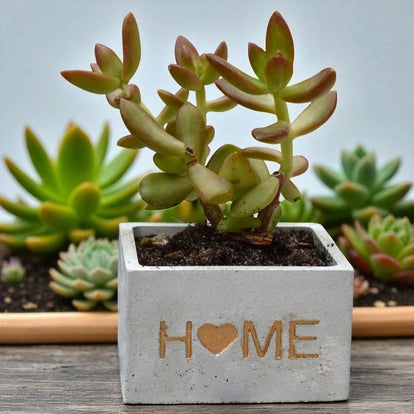 🏠 Petit pot rectangulaire "Home" : 9 cm de haut × 8 cm × 7 cm – Un petit pot sobre avec inscription « Home », parfait pour une déco chaleureuse.