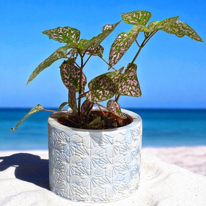 Apportez du relief à votre déco avec ce pot en béton décoratif à motifs structurés.