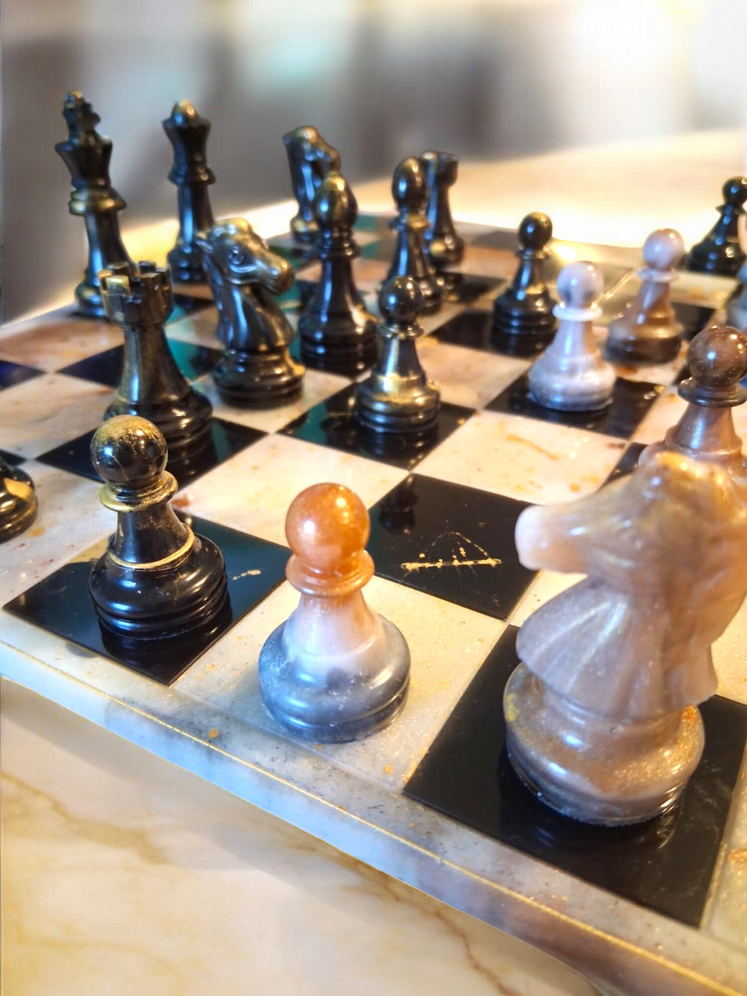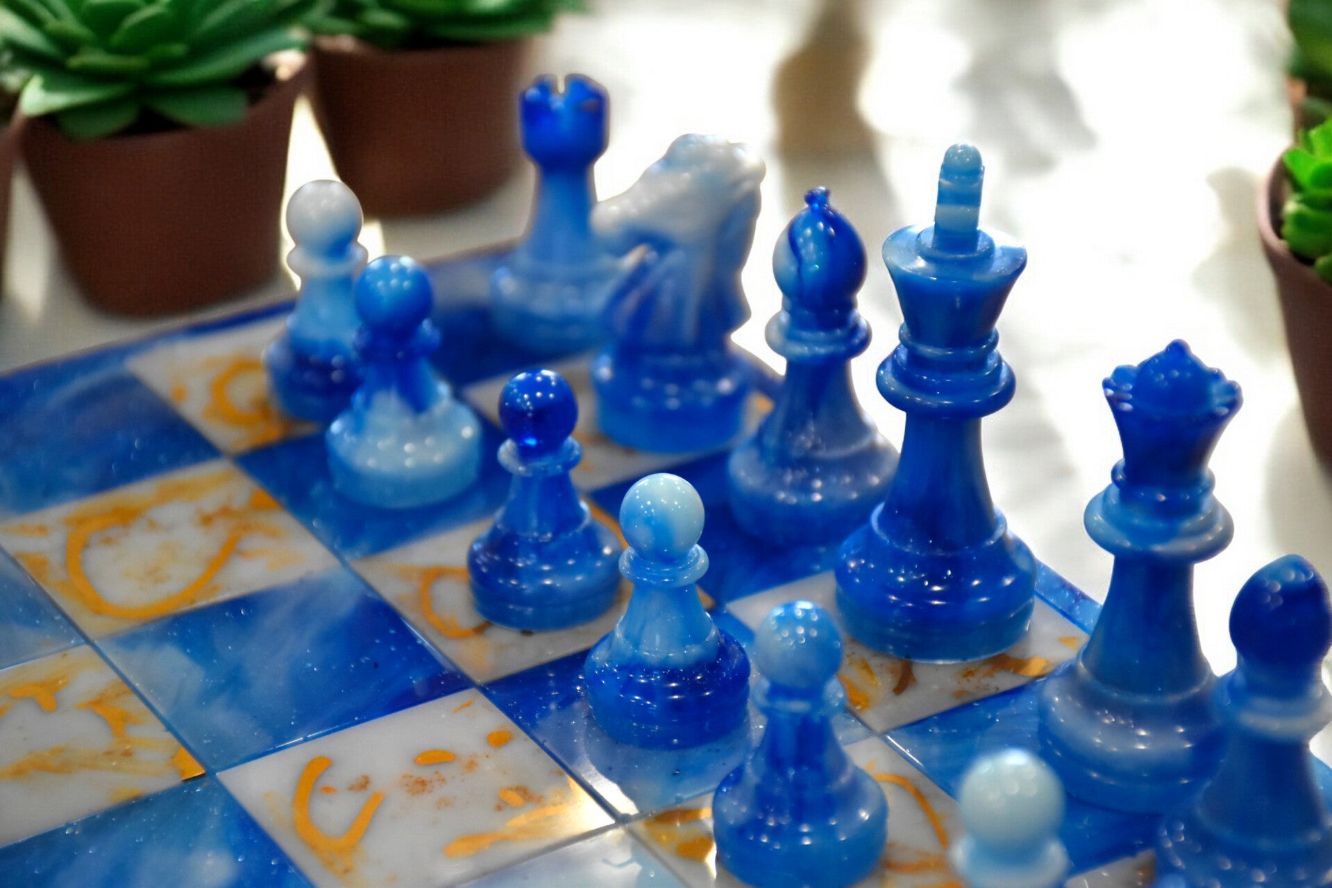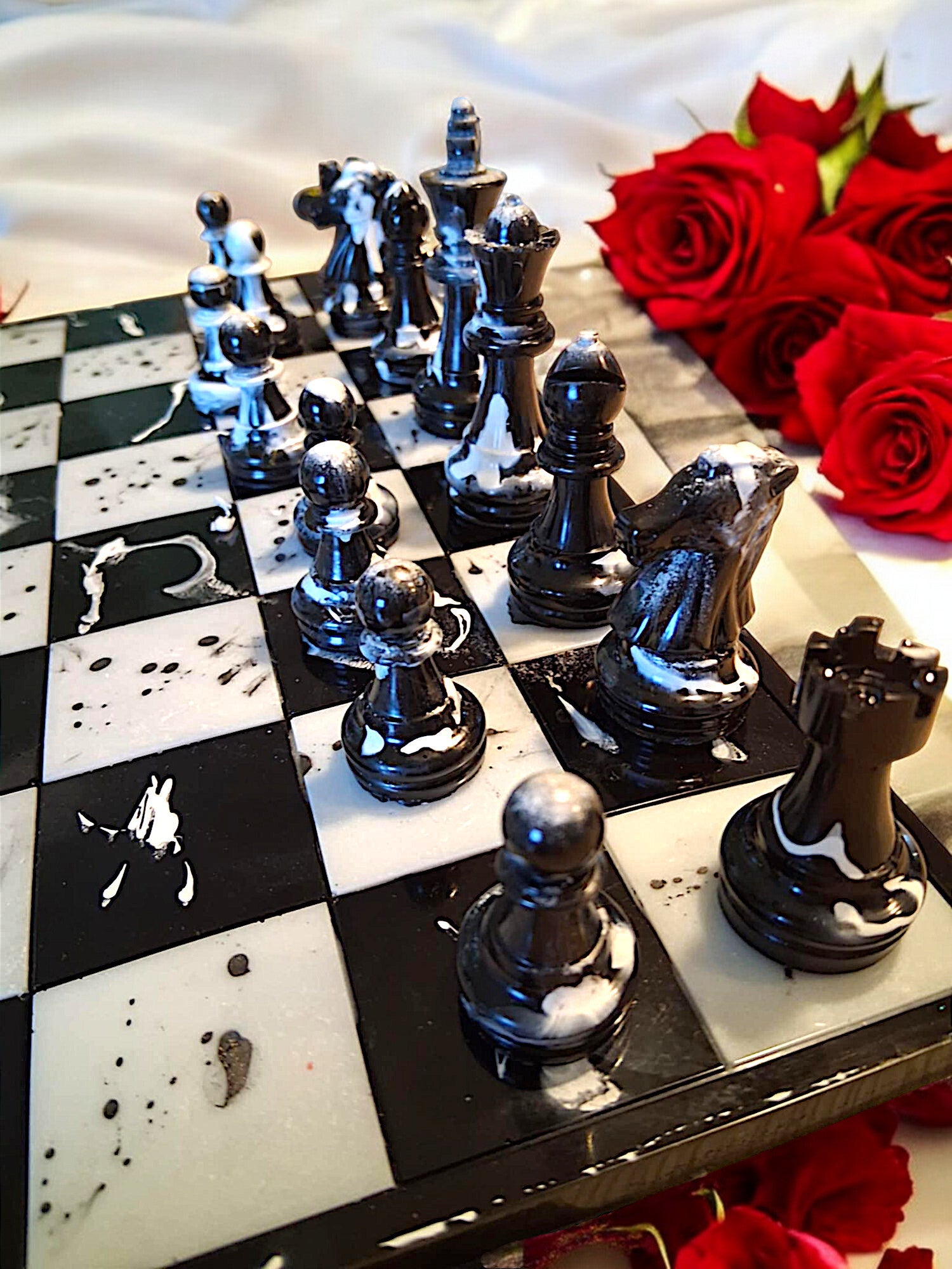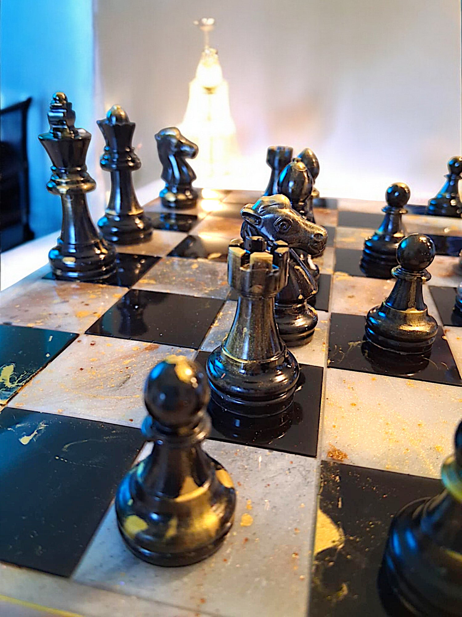 Découvrez nos échiquiers en résine époxy, alliant artisanat d’exception et design unique. Chaque modèle est soigneusement conçu à la main, avec des finitions impeccables et un choix varié de styles et de couleurs selon vos envies.