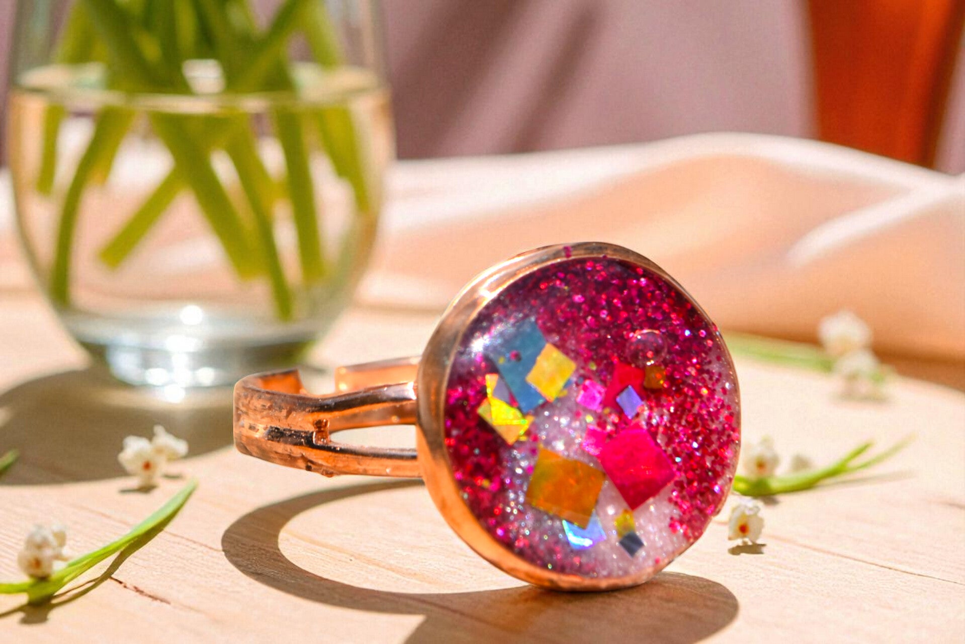 💍 Bague Réglable en Alliage & Résine Époxy – Artisanale et Unique 💍