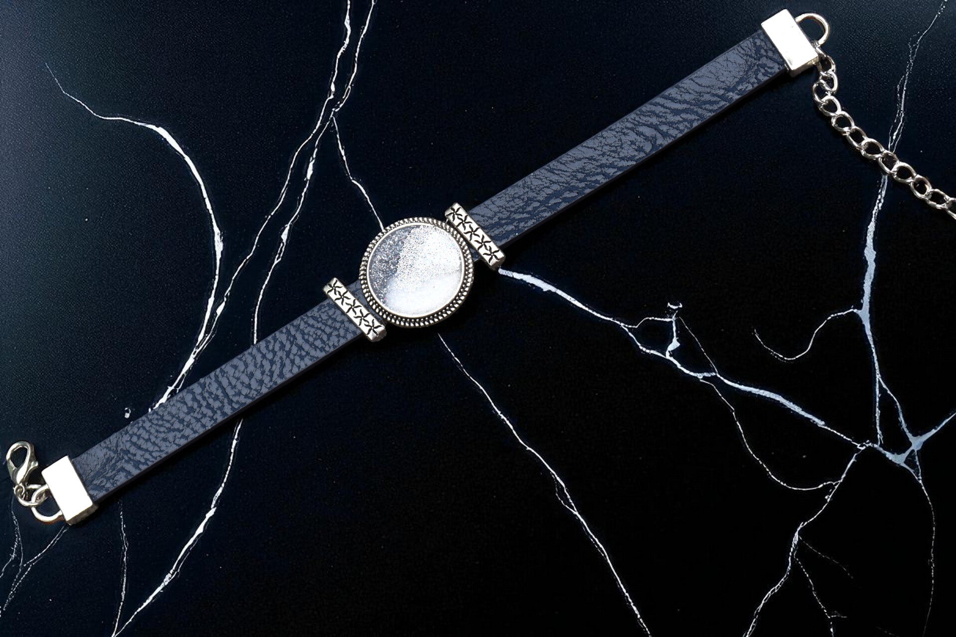 🔹 Taille réglable : s’ajuste facilement à la majorité des poignets 🔹 Matériaux : lanière en simili cuir souple + cabochon en alliage sans nickel et résine époxy 🔹 Coloris disponibles : noir, marron, beige, rouge, bleu et plus selon les modèles 🔹 Cabochons uniques : effets nacrés, inclusions, couleurs profondes ou translucides 🔹 Fermeture pratique et sécurisée 🔹 Prix : entre 9 € et 14 €, selon la taille du cabochon et le modèle