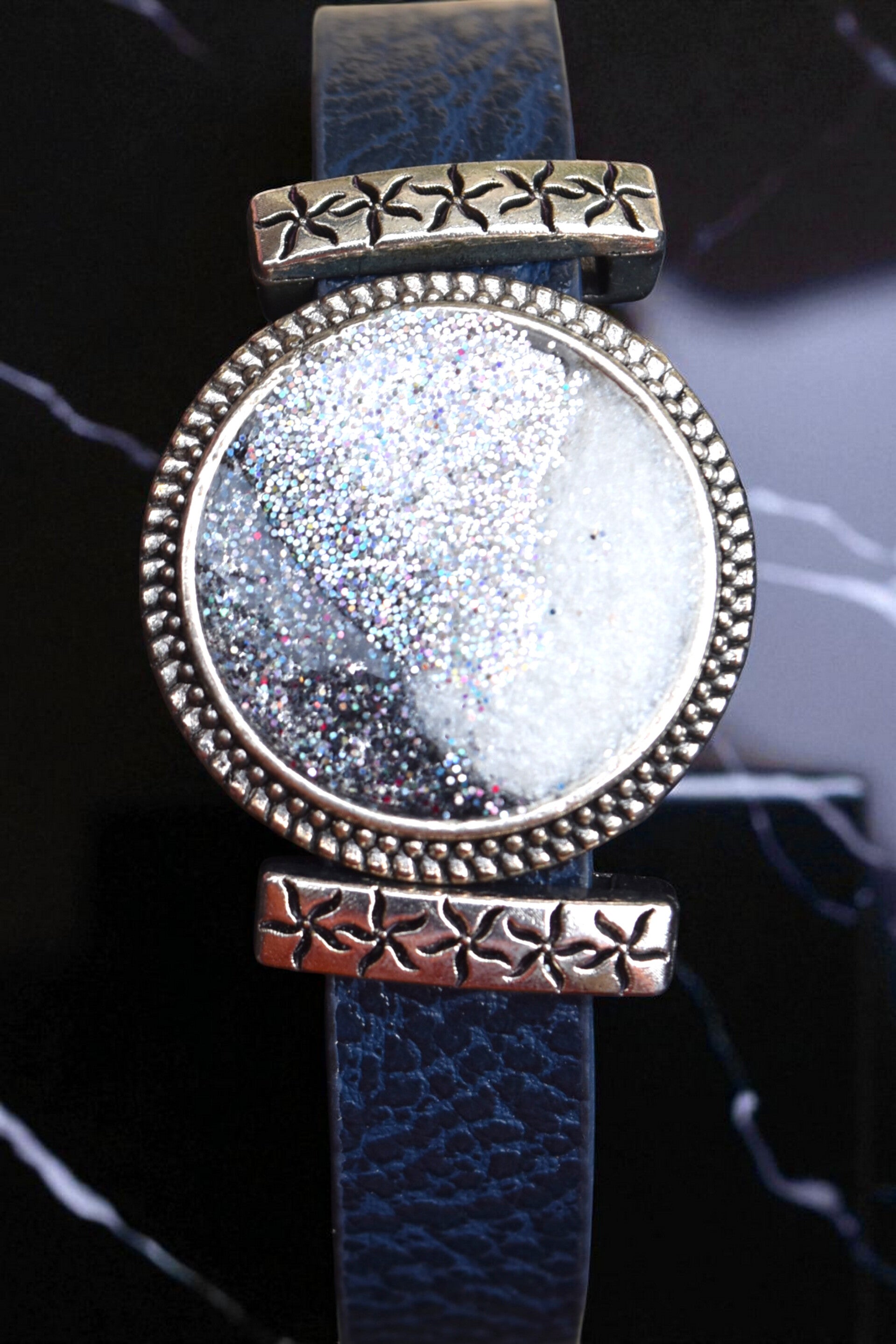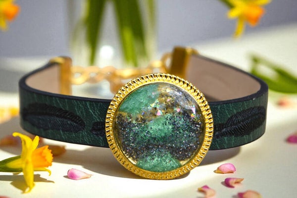 Apportez une touche de caractère à votre look avec ce bracelet artisanal en simili cuir, orné d’un cabochon en résine époxy fait main. Chaque pièce est conçue avec soin pour allier originalité, confort et style.