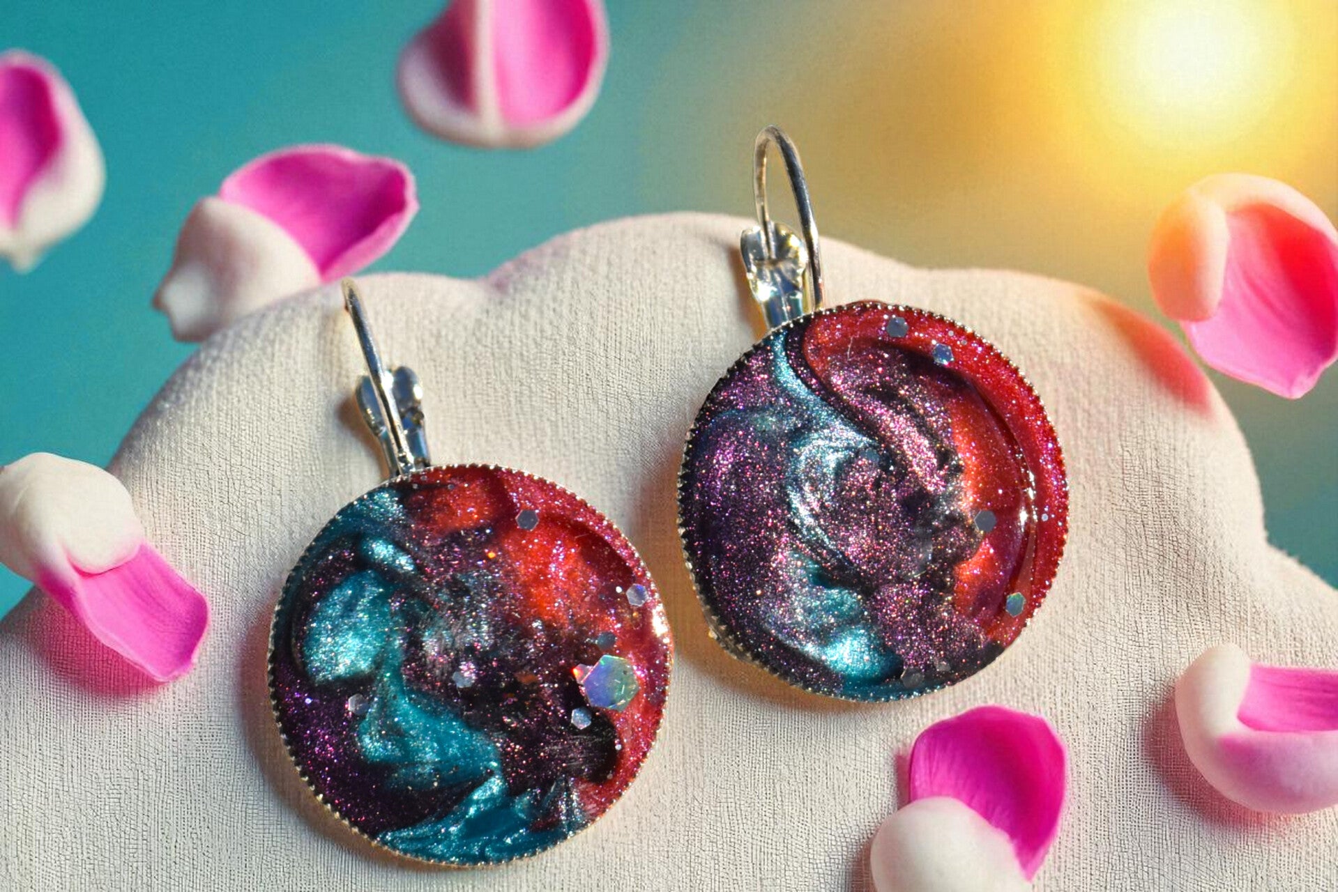 Laissez-vous séduire par ces boucles d’oreilles artisanales , ornées d’un cabochon en résine époxy décoré à la main. Disponibles en finition dorée ou argentée , elles se déclinent en plusieurs formes et styles pour s’adapter à toutes les envies.