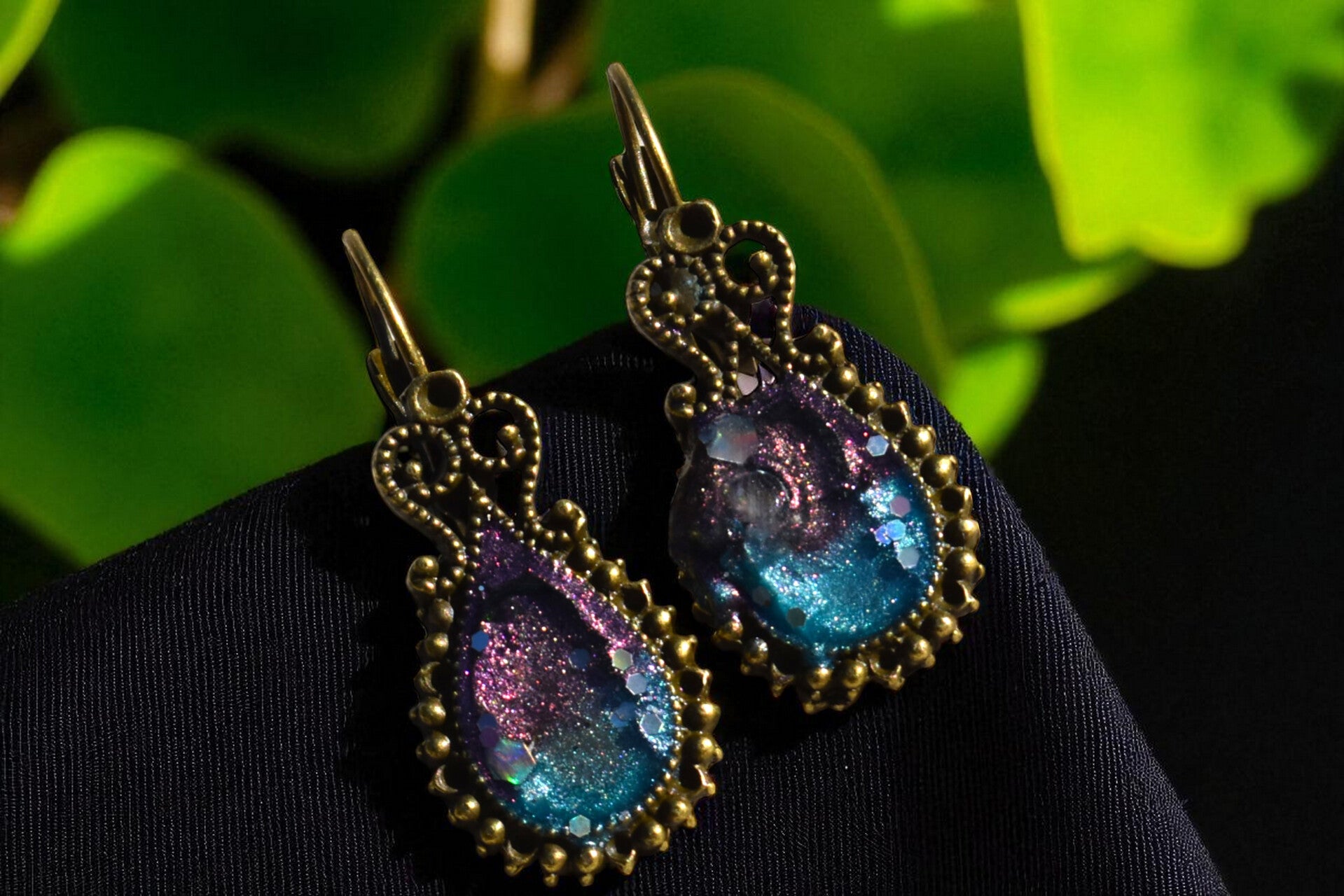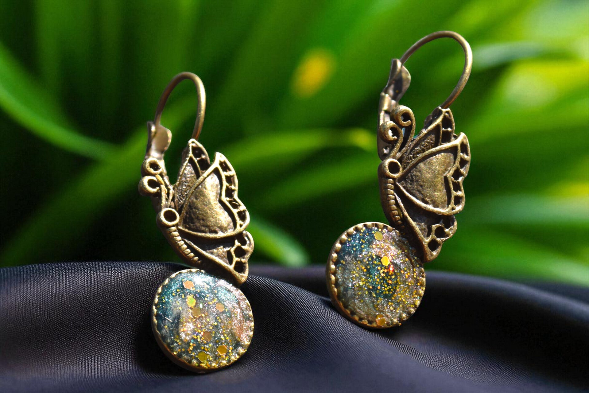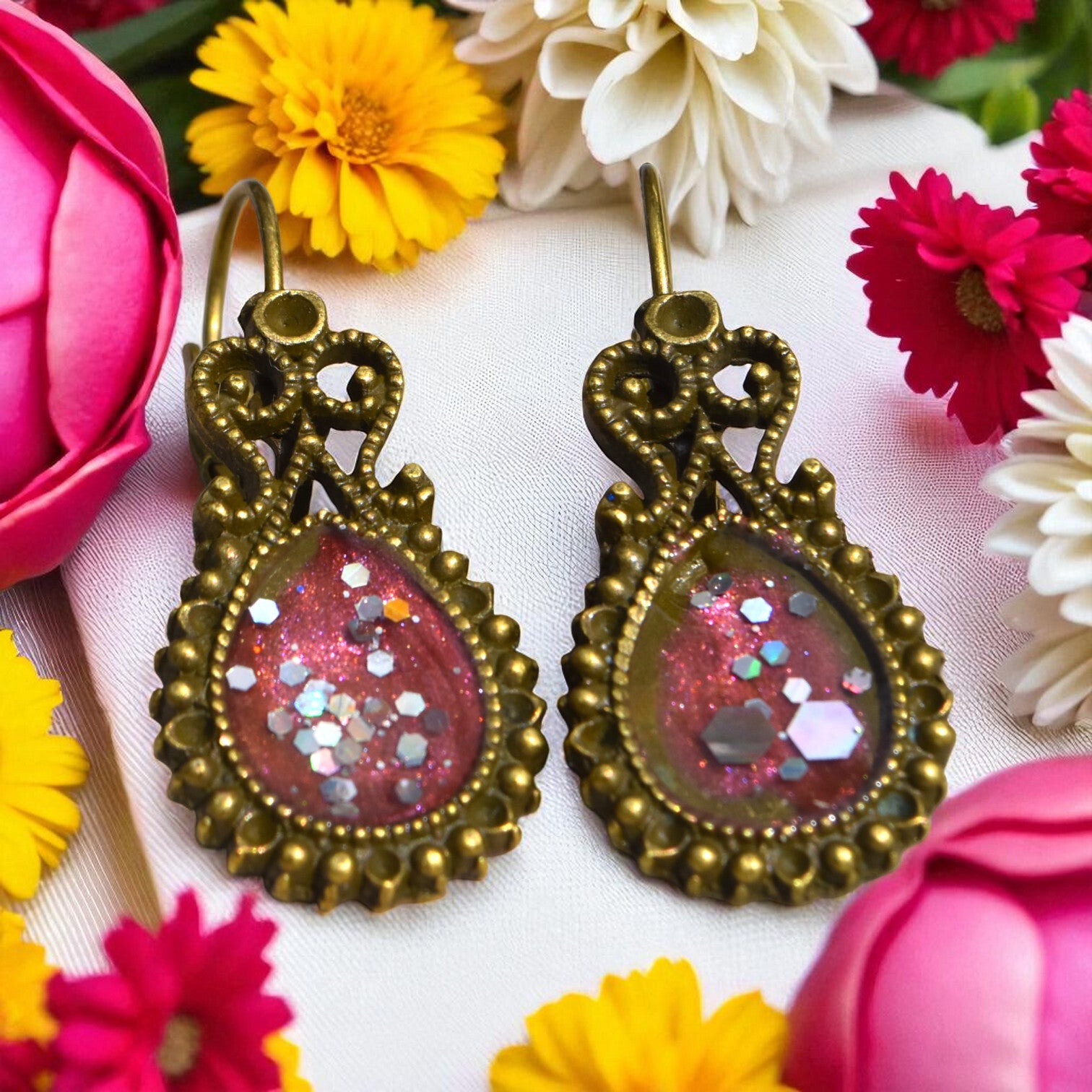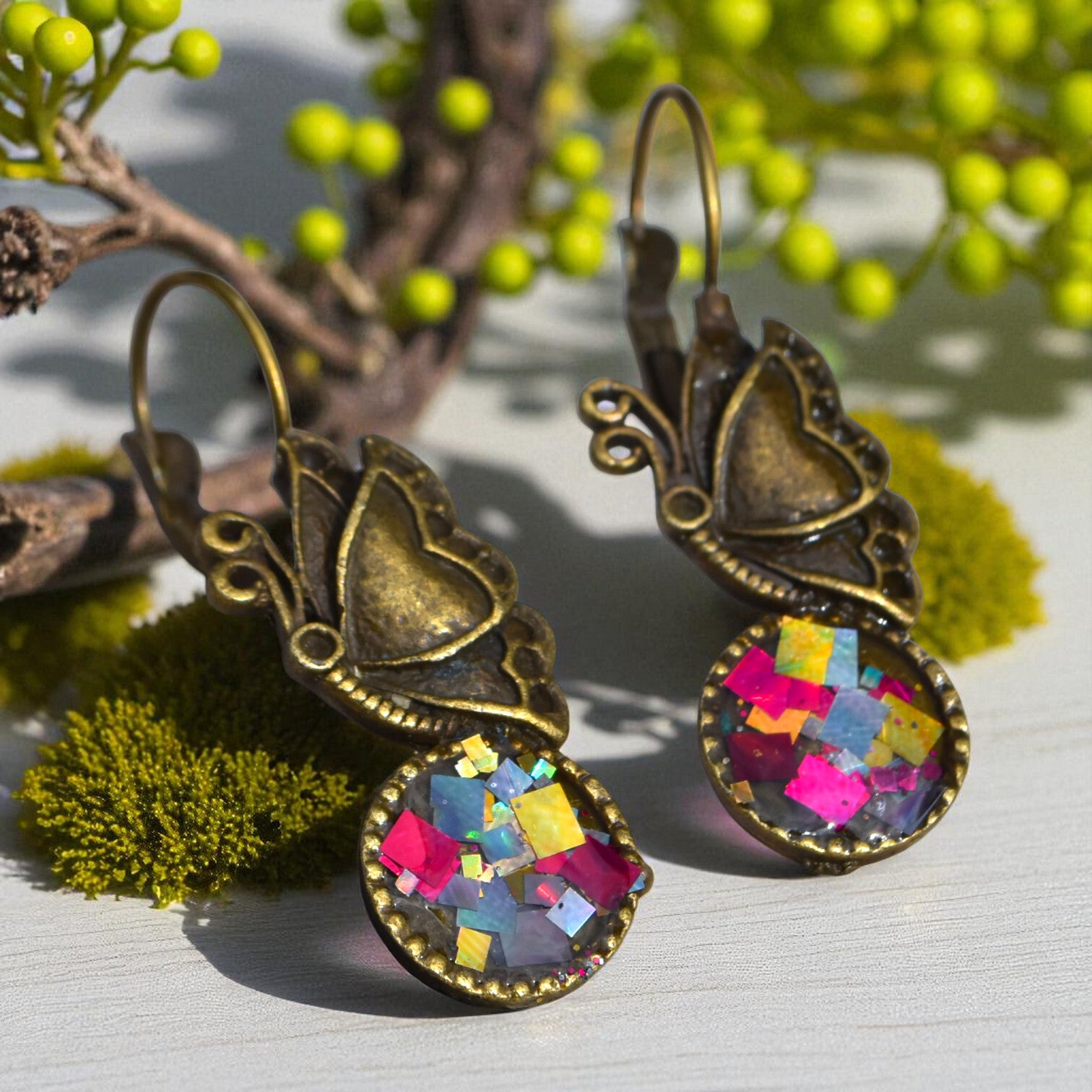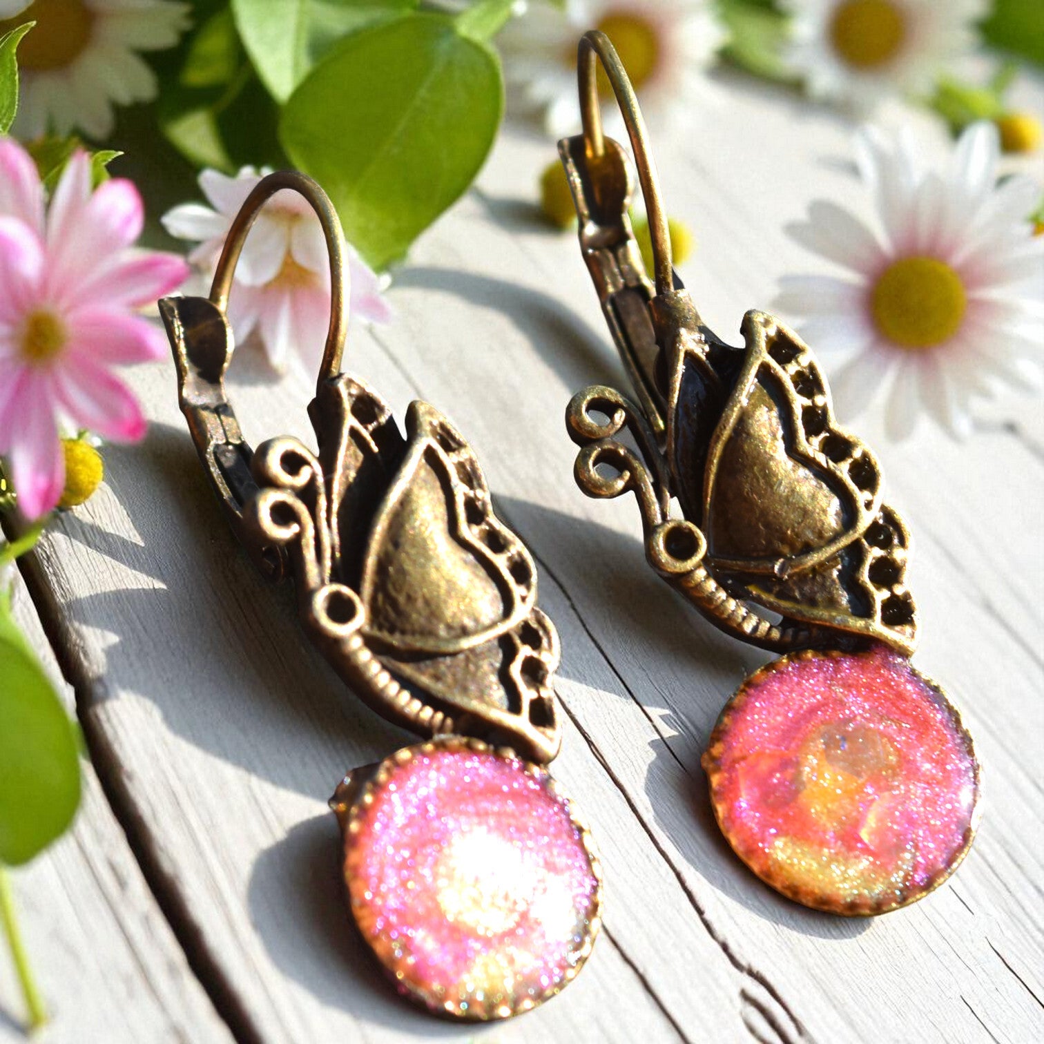 ✨ Boucles d’Oreilles en Alliage Vieil Or & Résine Époxy – Élégance Vintage & Fait Main ✨