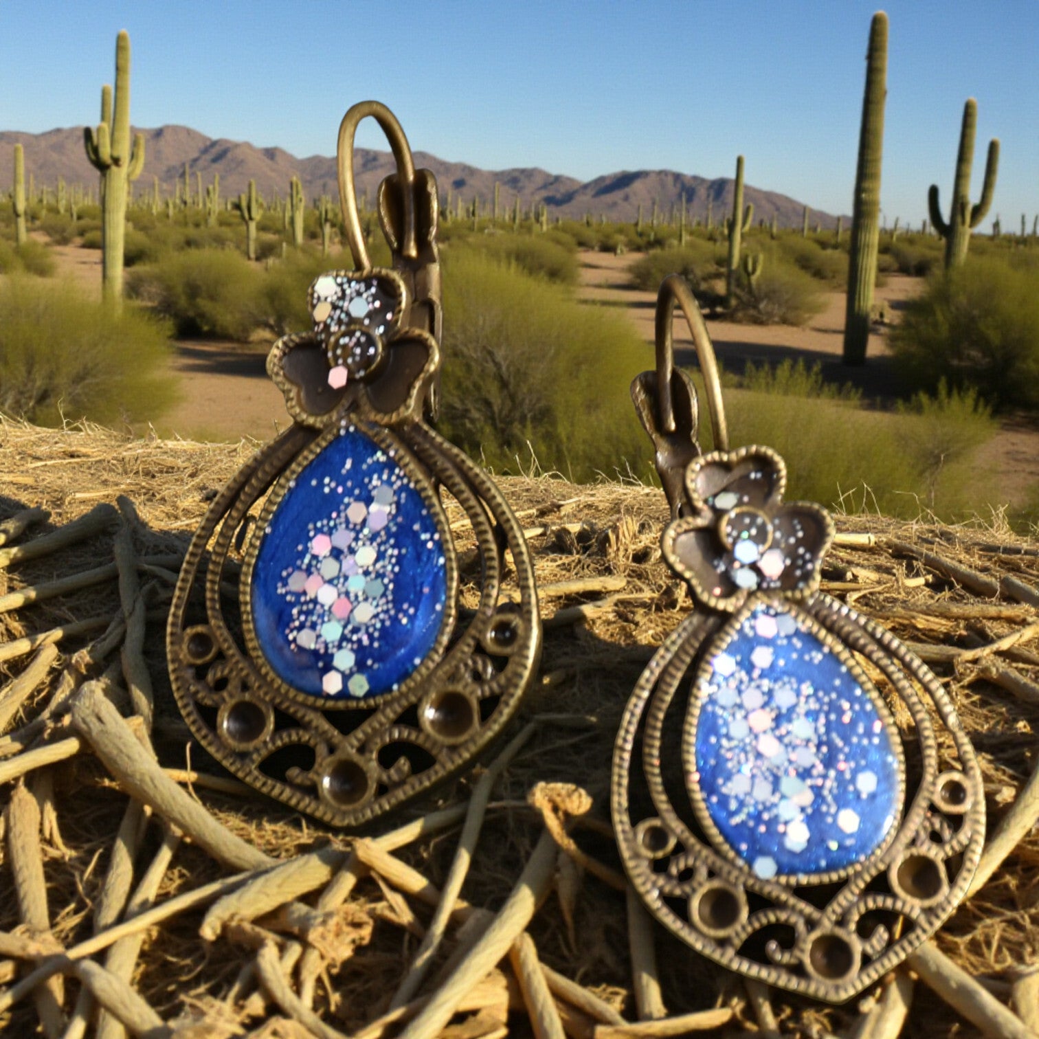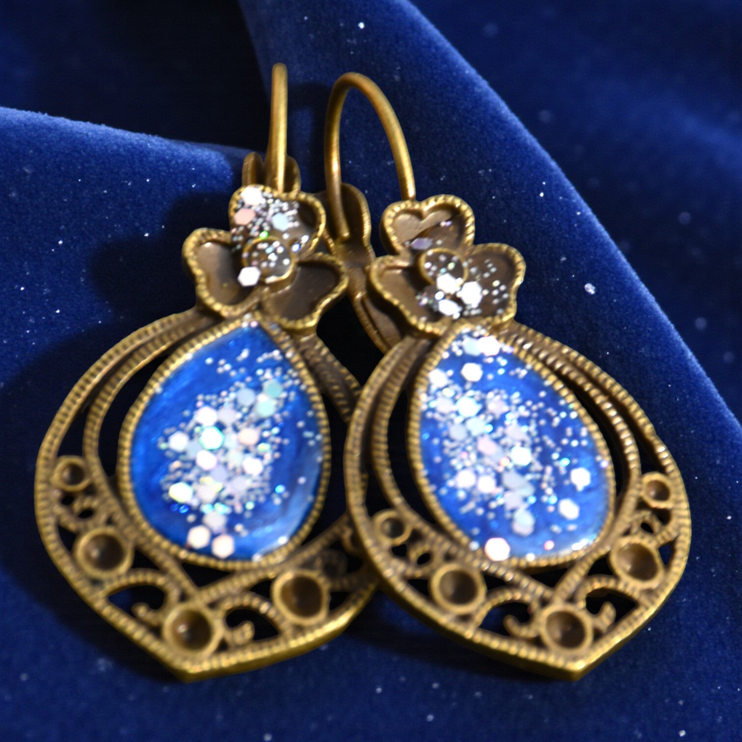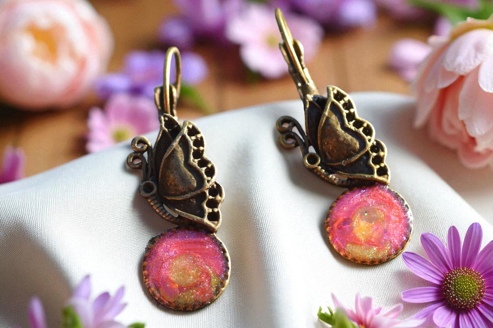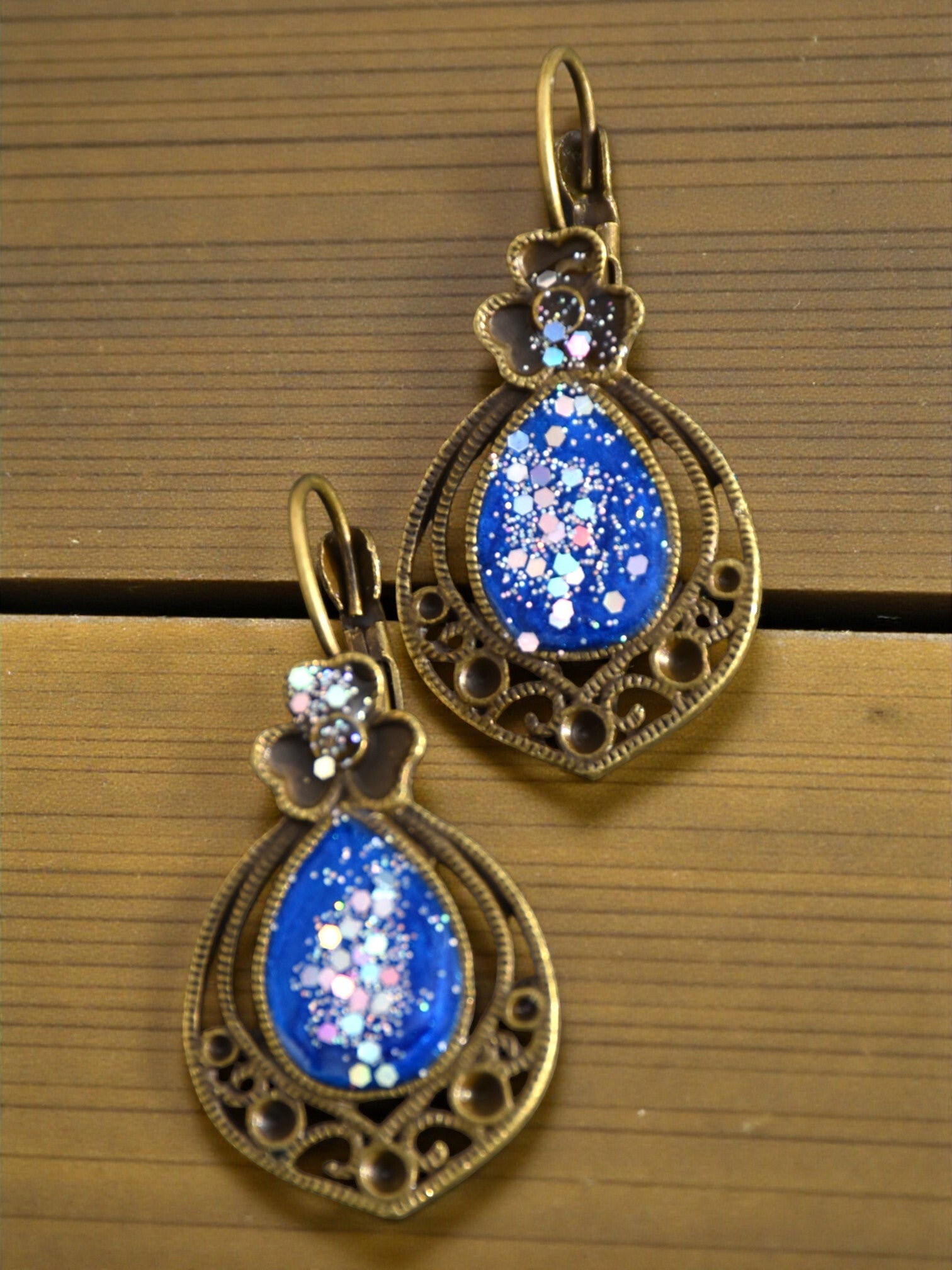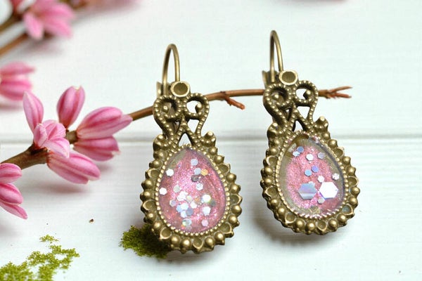 ✨ Boucles d’Oreilles en Alliage Vieil Or & Résine Époxy – Élégance Vintage & Fait Main ✨