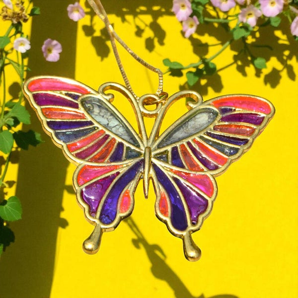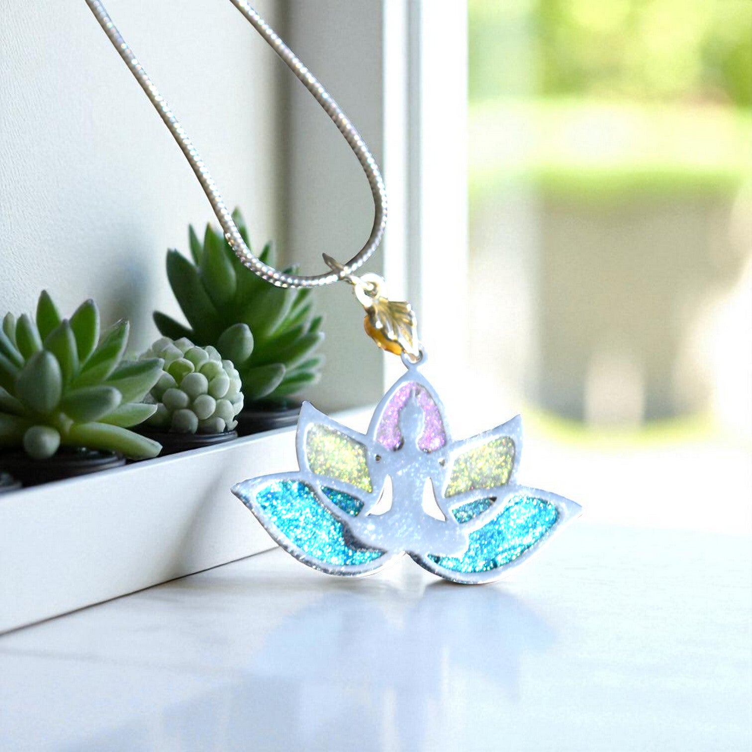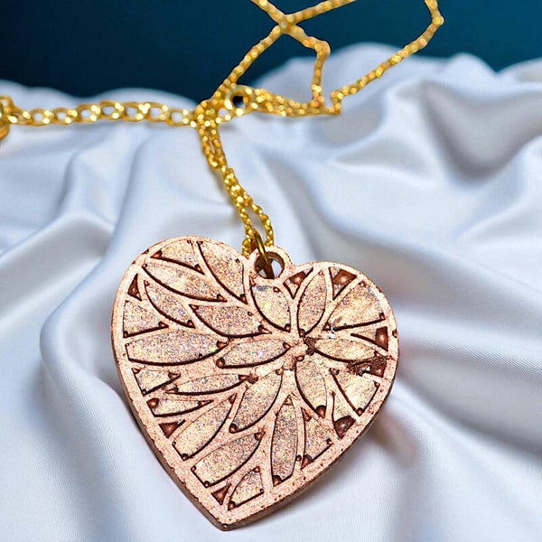 Pendentif en alliage et résine : alliance élégante entre métal et transparence.
