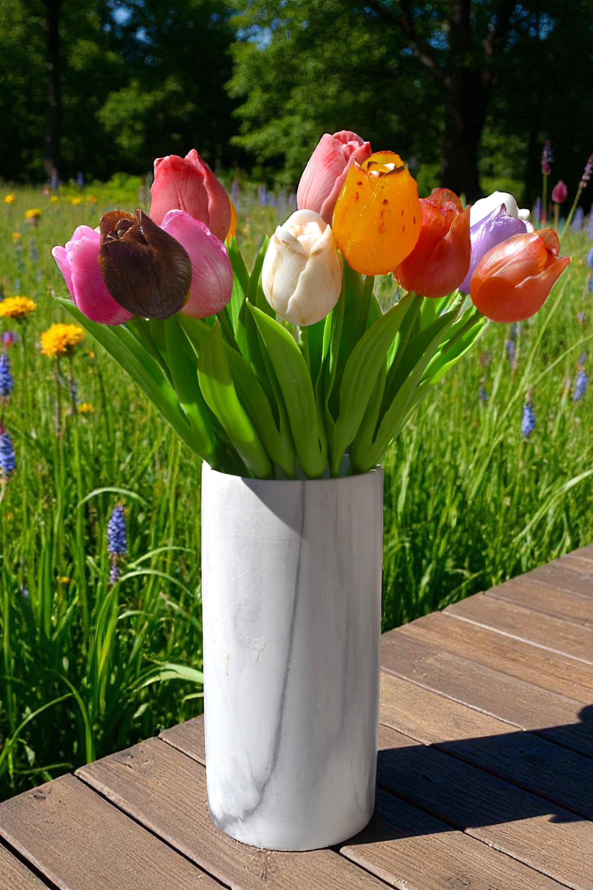 Envie d’une fleur qui dure pour toujours ? Découvrez nos roses et tulipes en résine époxy, faites main avec amour et délicatesse. Chaque pièce est unique, montée sur une tige au rendu réaliste pour un effet bluffant !