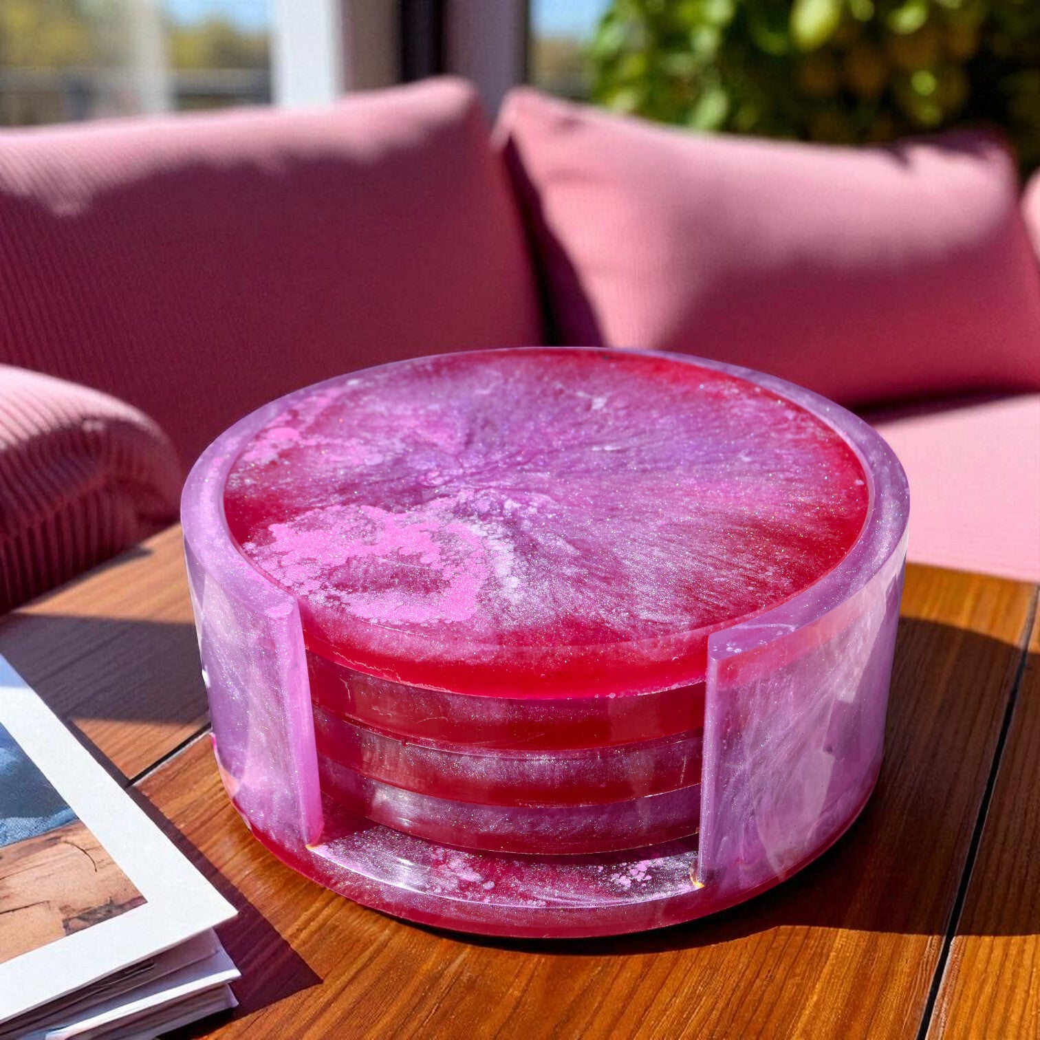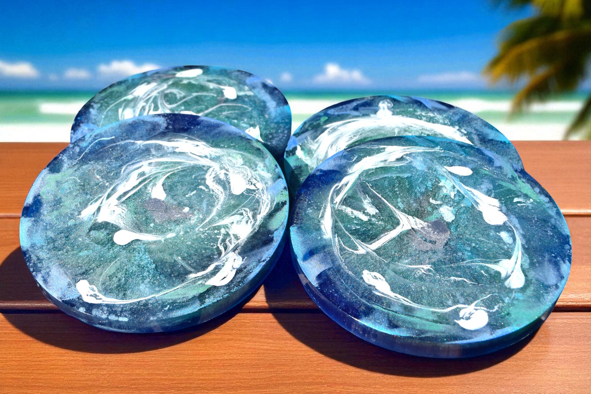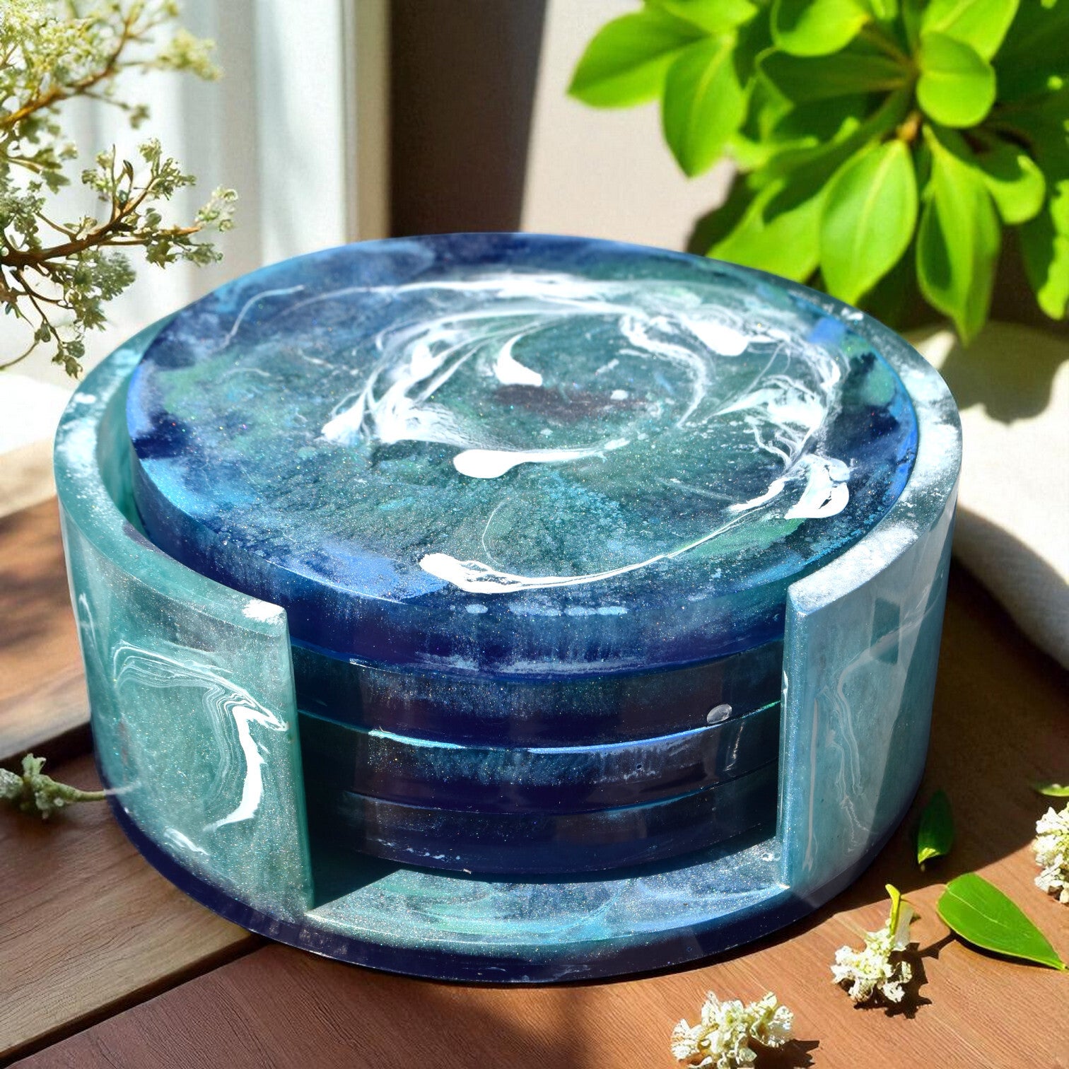 ✨ Lot de 4 sous-verres ronds en résine époxy avec support