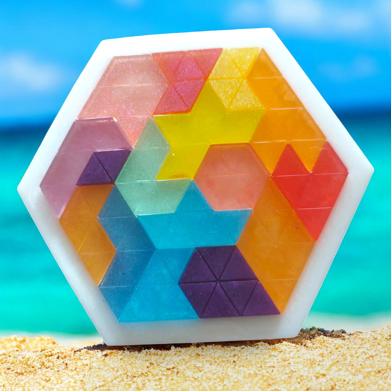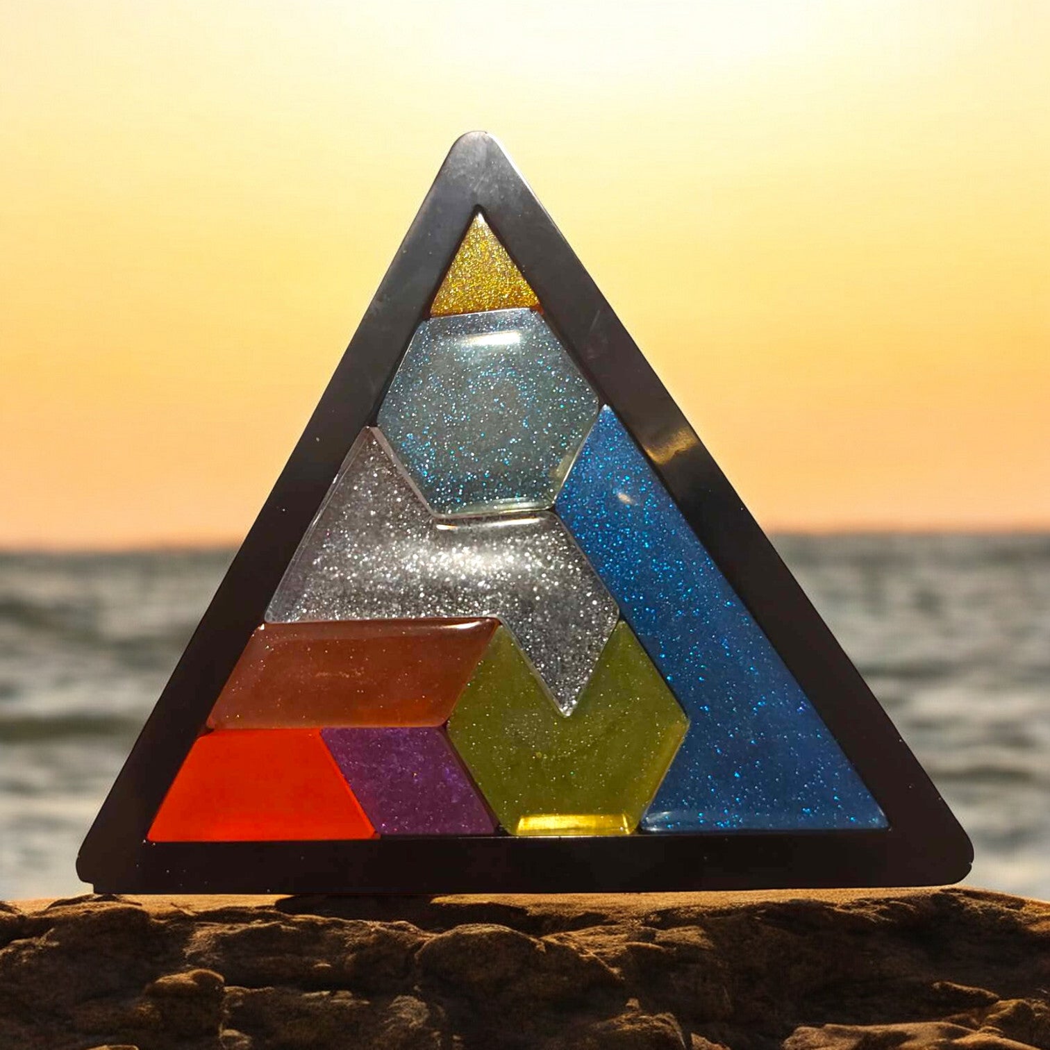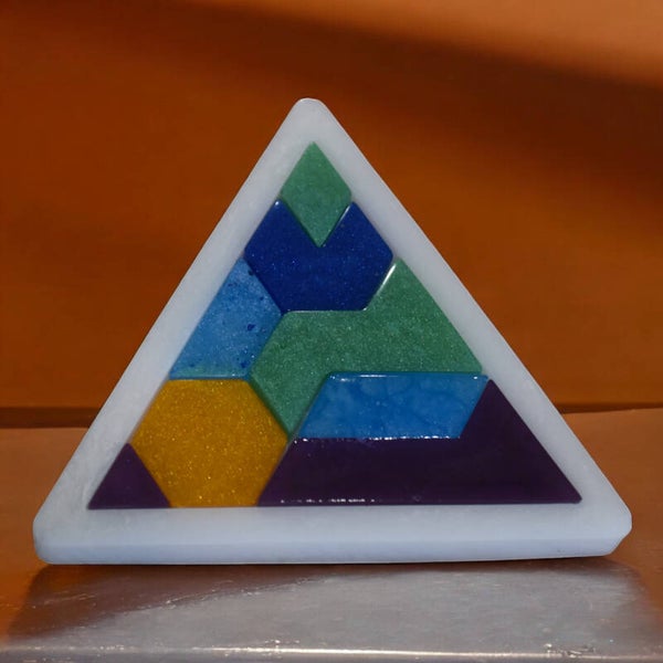 Sur une base de 11 cm en forme de triangle, ce puzzle est composé de 8 pièces colorées à assembler pour reformer le triangle parfait. Idéal pour les amateurs de défis !