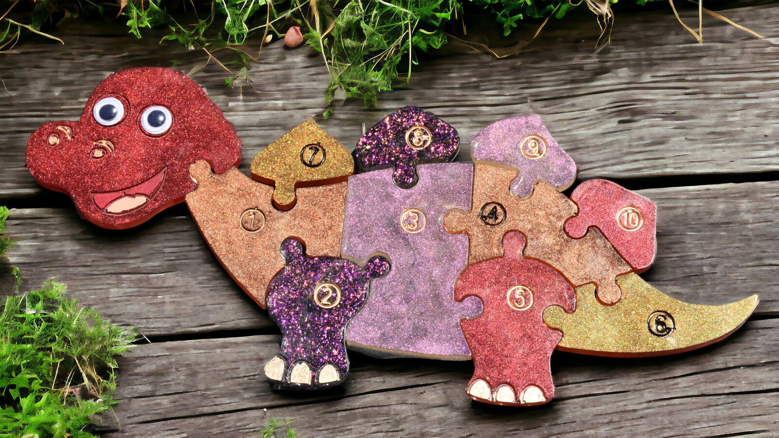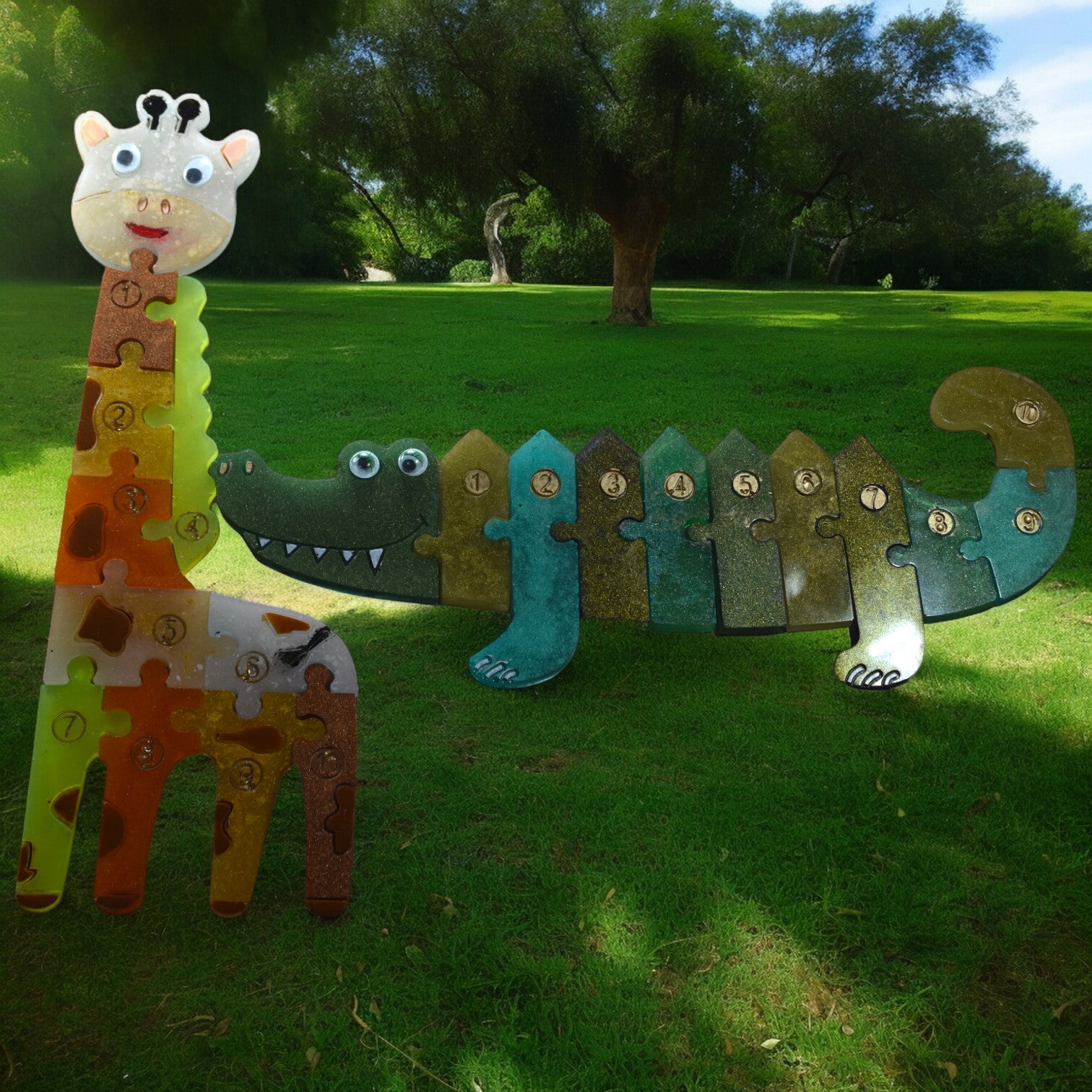 Découvrez nos puzzles artisanaux en résine époxy, vendus en lot de 2, dans des versions amusantes et variées : savane, dinosaures, voitures ou encore puzzle chien.