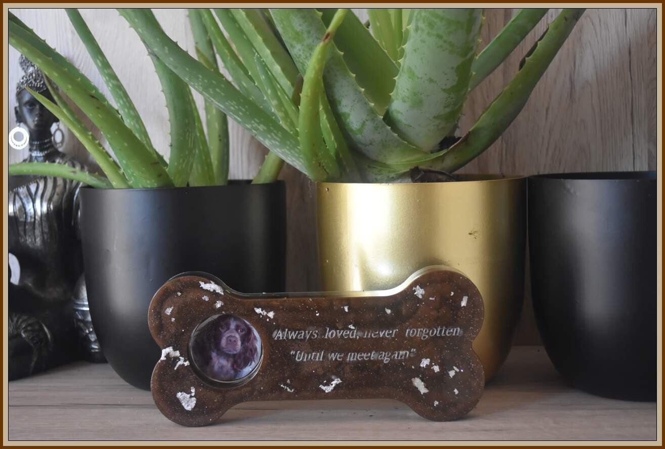 Os Commémoratif pour Chien – Souvenir Personnalisé en Résine Époxy avec Insertion Photo ou Mèche de Poil