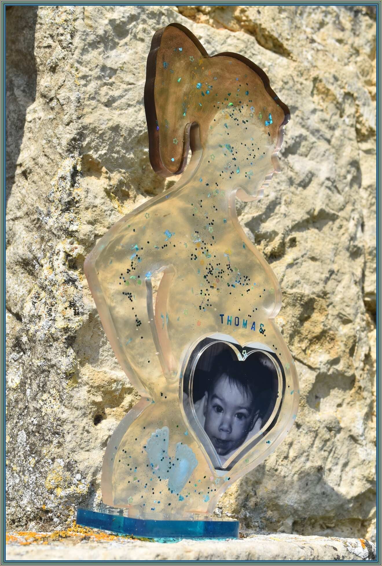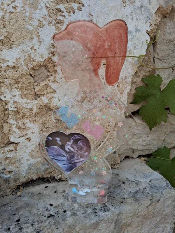 Créez un souvenir unique et émouvant de la grossesse avec ce cadre photo "femme enceinte" en résine époxy 🌸. La silhouette représente une future maman, avec un cœur de 7 cm au niveau du ventre pour insérer une photo d’échographie, un souvenir ou un petit message personnel 📸.