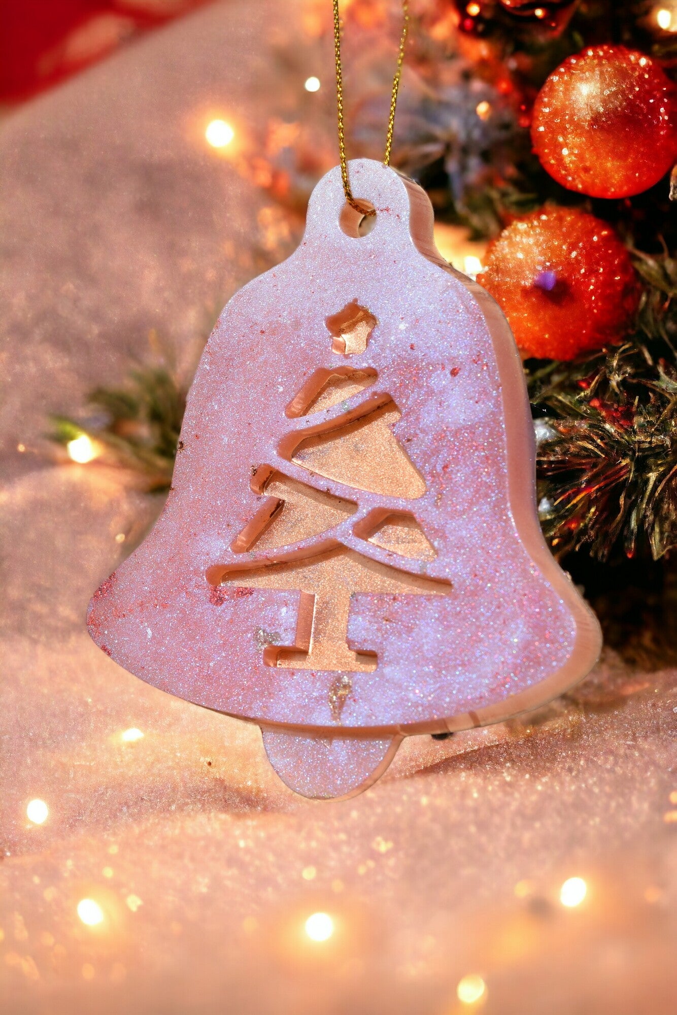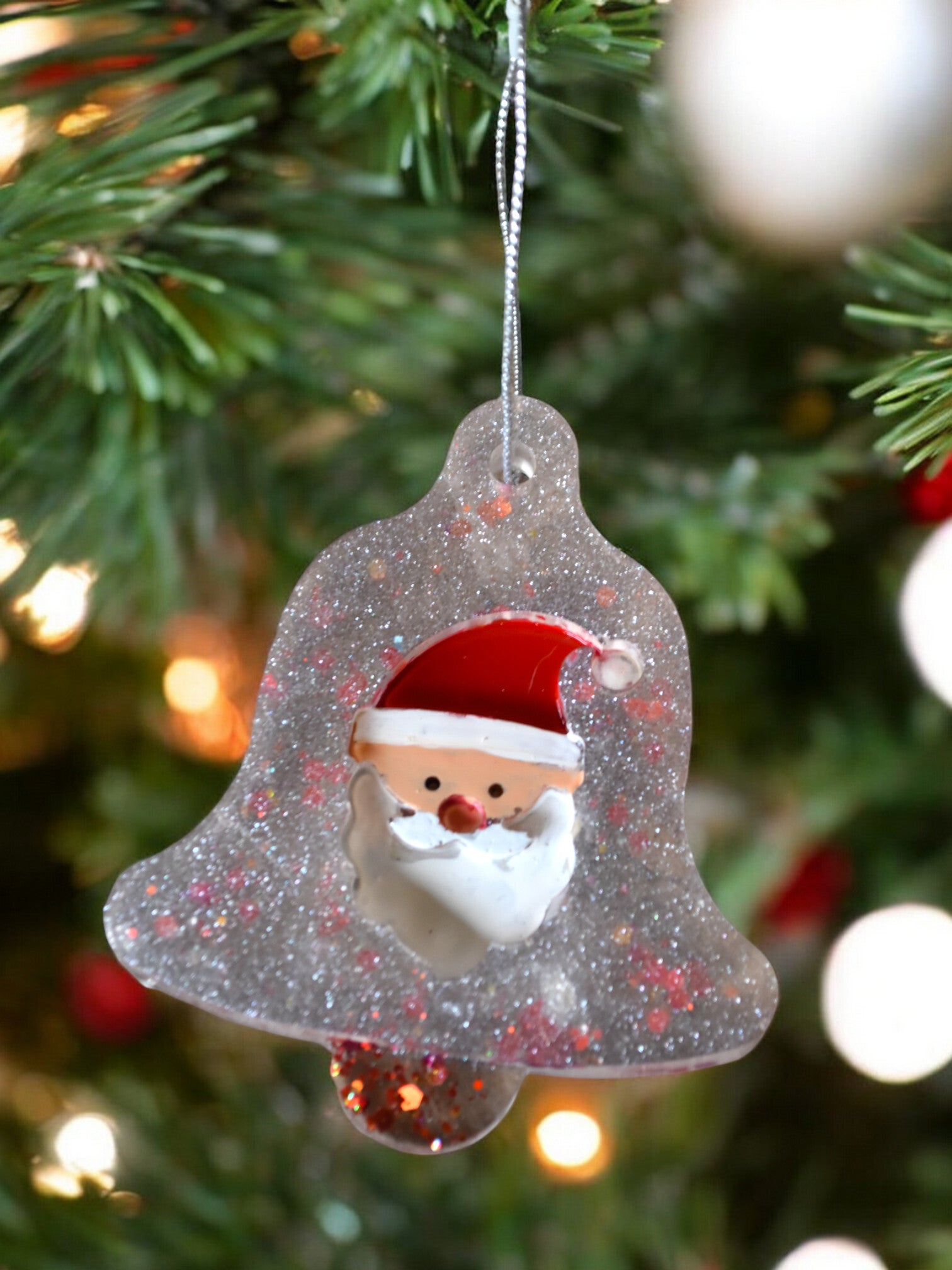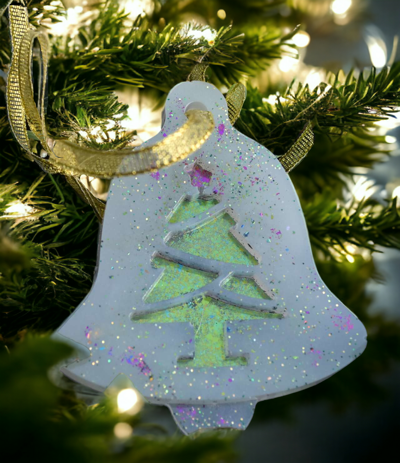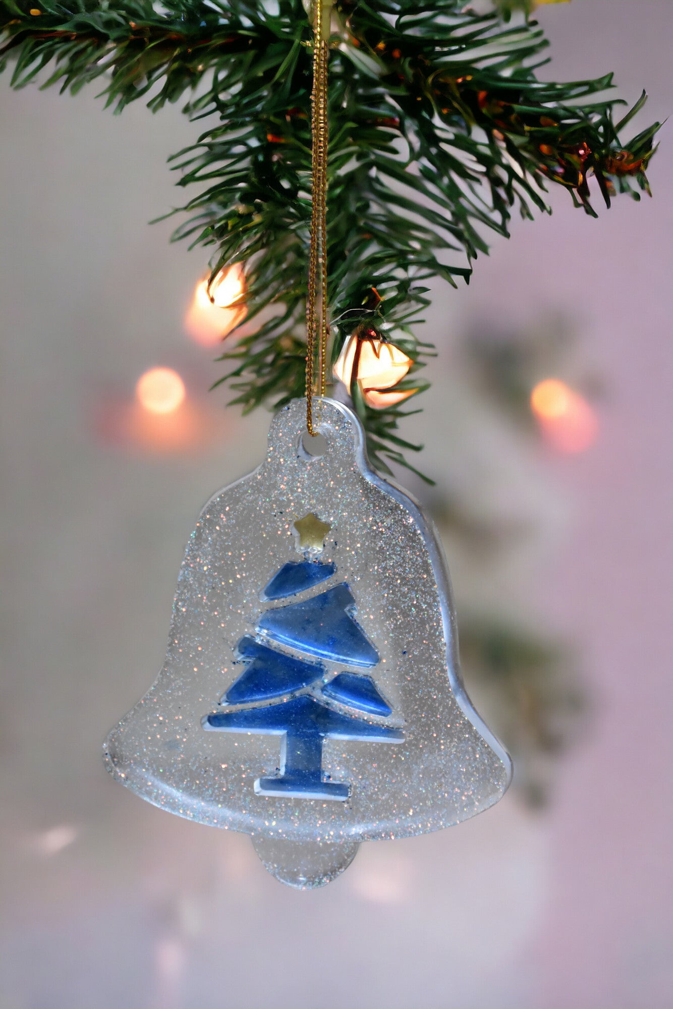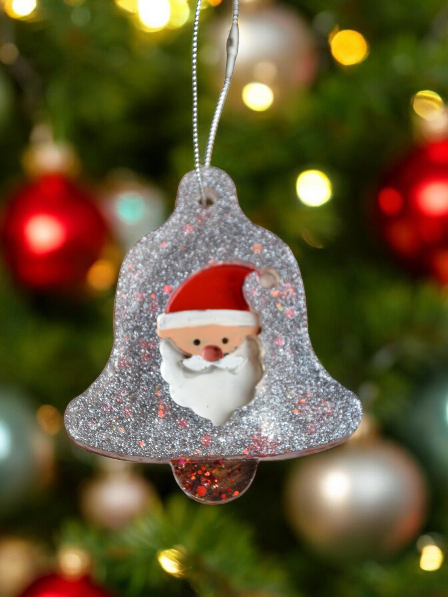 Décorez votre sapin avec élégance grâce à nos décorations en forme de cloche (9,5 x 8 cm) en résine époxy, finement travaillées avec des motifs en relief :