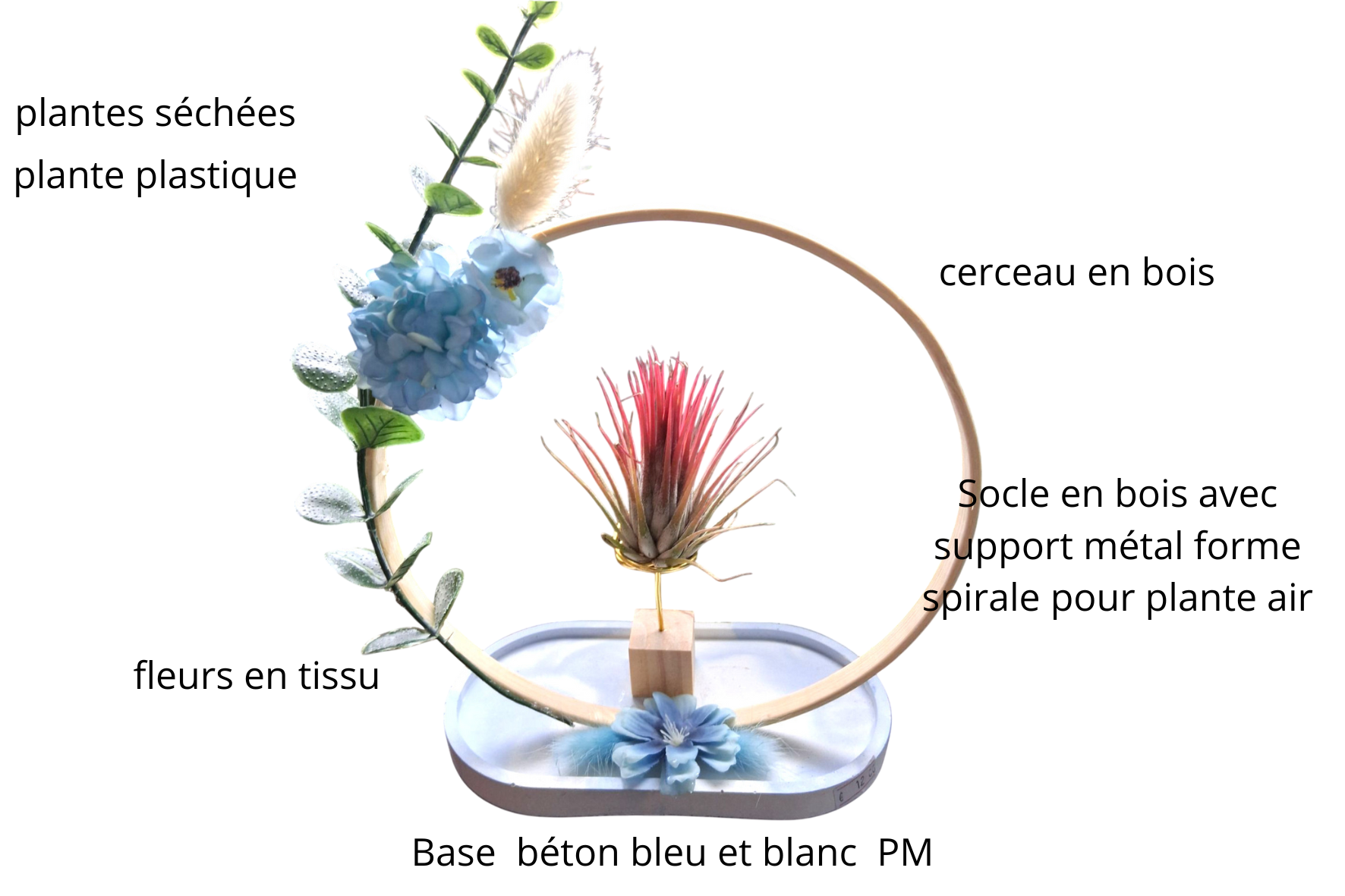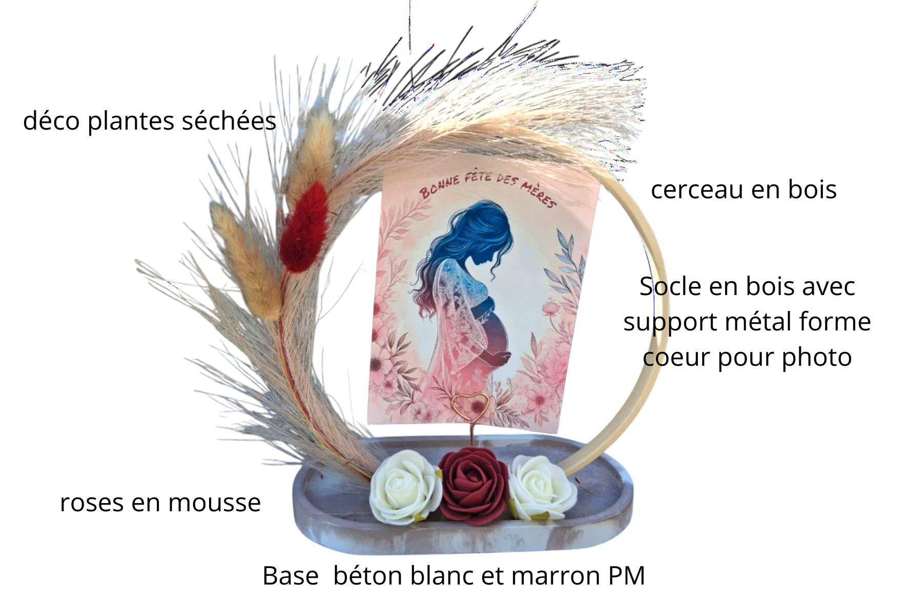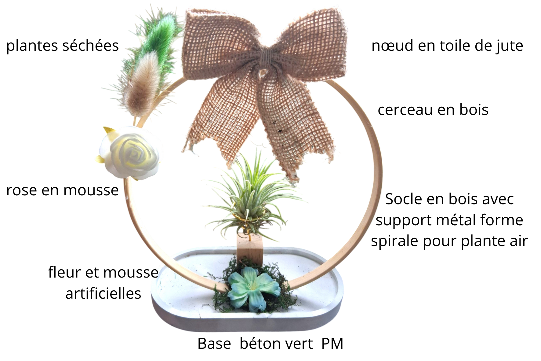 Laissez entrer l’originalité dans votre intérieur avec ces plateaux en béton décoratif, surmontés d’un cercle en bois délicatement orné de fleurs, feuillages et décorations artificielles. Chaque modèle est unique : les compositions varient, offrant des univers fleuris, naturels ou même marins selon l’inspiration 🌿🌊🌺.