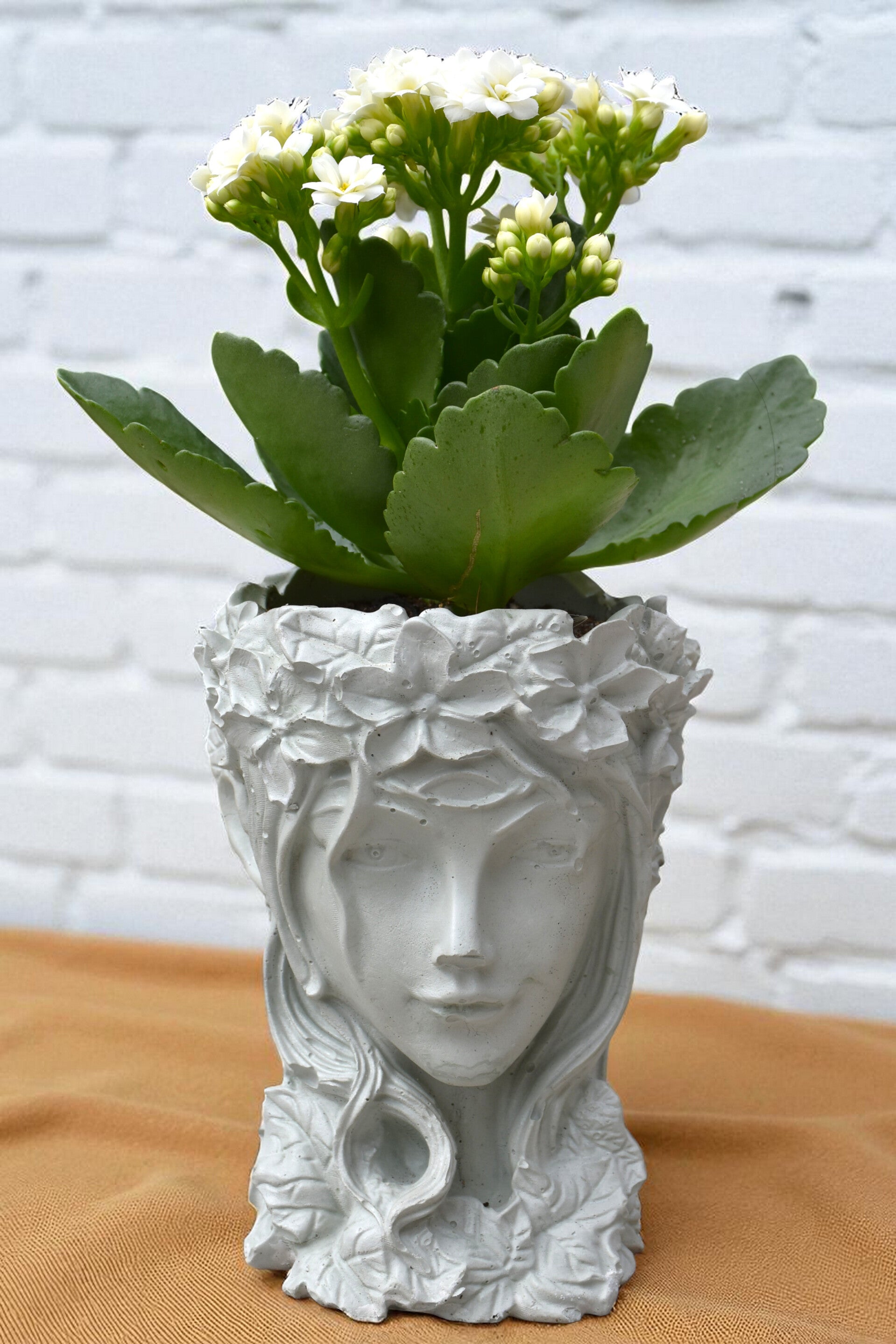 Pot décoratif en béton – Tête de déesse + plante incluse